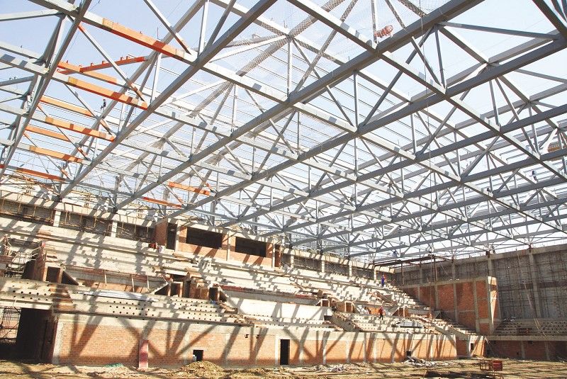 位于蚌埠經(jīng)濟(jì)開發(fā)區(qū)大學(xué)園區(qū)內(nèi)的蚌埠龍湖體育館正加緊建設(shè)。目前場(chǎng)館主體建設(shè)已基本完成,進(jìn)入配套、裝修階段,預(yù)計(jì)今年11月份全面竣工。龍湖體育館項(xiàng)目總投資額8000萬元,總占地面積60畝,按手球館標(biāo)準(zhǔn)設(shè)計(jì),建筑面積13209平方米,可容納觀眾5000人。建成后,可滿足室內(nèi)手球、籃球、乒乓球、排球、羽毛球、體操、體育舞蹈等室內(nèi)訓(xùn)練和比賽,兼顧舉辦集會(huì)、文藝演出、商貿(mào)展示活動(dòng)。 記者 郭雷 攝影報(bào)道
