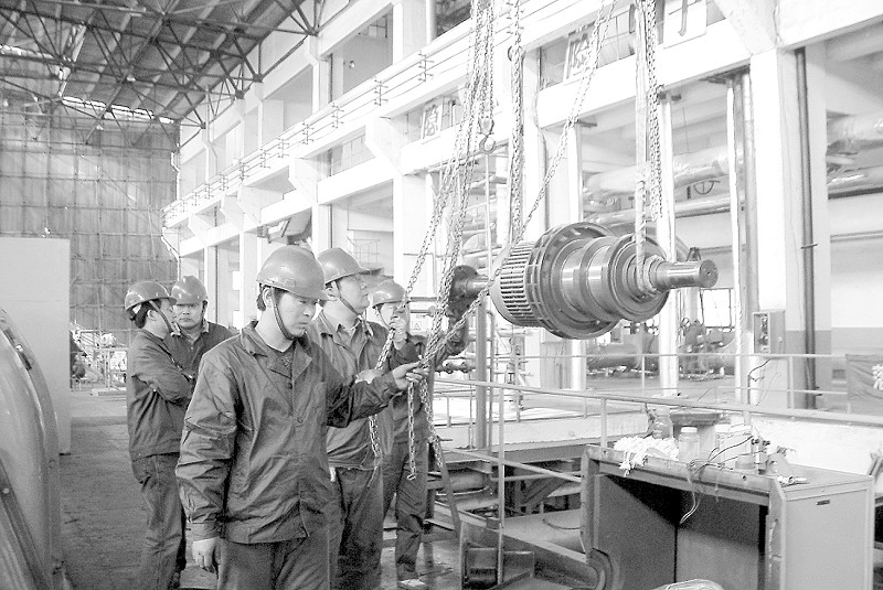 夏季用電高峰來臨之際,安徽新源熱電廠認(rèn)真做好設(shè)備、機(jī)組檢修工作,做好事故預(yù)想和事故預(yù)案,全力以赴打好“迎峰度夏”攻堅戰(zhàn)。圖為技術(shù)人員檢修發(fā)電勵磁機(jī)轉(zhuǎn)子。 記者 柴光宇 通訊員 蒯平 蘇紅兵 攝