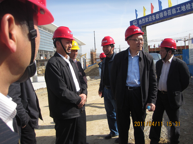 陳書記一行在工地現(xiàn)場(chǎng)聽取匯報(bào)
