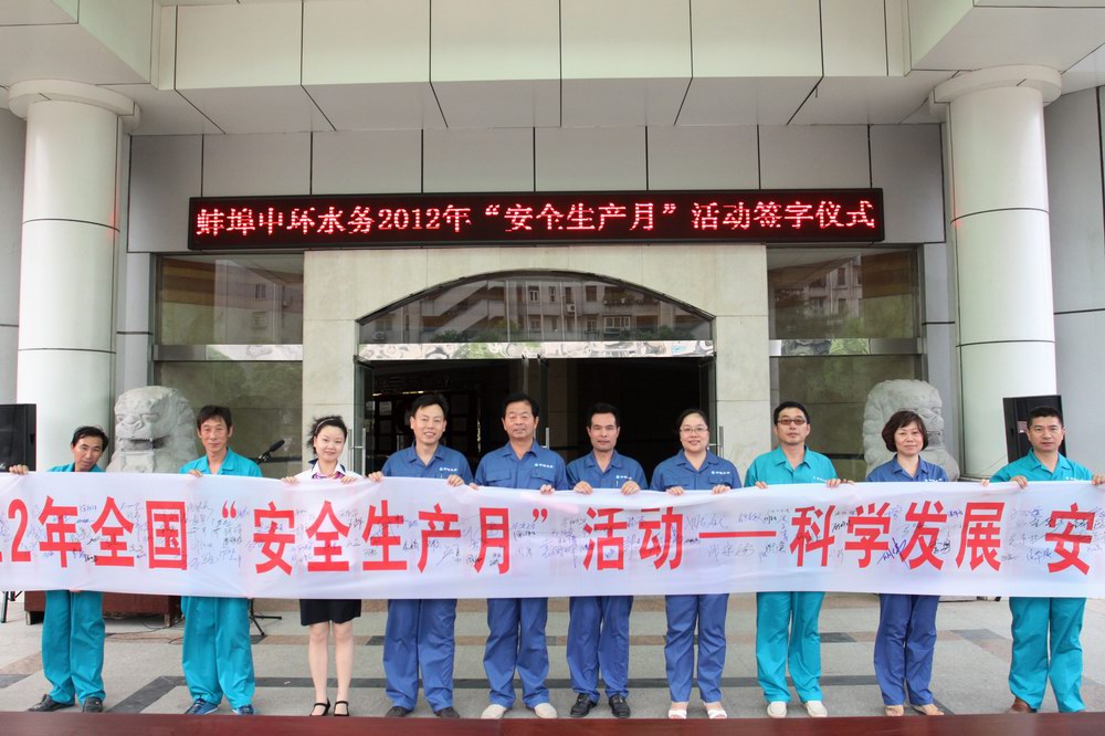 6月15日,蚌埠中環(huán)水務(wù)舉行了“安全生產(chǎn)月”活動(dòng)簽字儀式,這是“安全生產(chǎn)月”活動(dòng)中的一項(xiàng)重要內(nèi)容。公司領(lǐng)導(dǎo)班子成員、各部門負(fù)責(zé)人、安全員和100多名員工參加了簽字儀式。